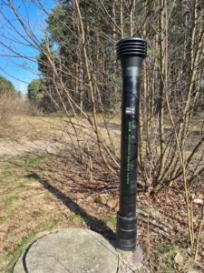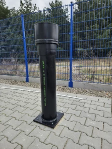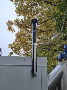 The internal chimney anti odour filter is directly installed in the existing ventilation chimney of sewage pumping stations. Its outer diameter is directly adapted to the inner diameter of the existing ventilation chimney, allowing it to fit inside. The filter is mounted on the head of the chimney using a special ring. Installation is exceptionally easy and does not require dismantling of existing ventilation chimneys.