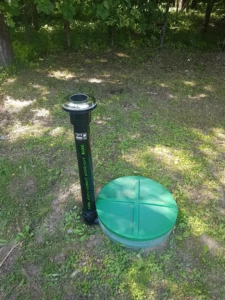 The solar chimney anti odour filter is directly installed in the ventilation opening (the outer diameter of the filter is adapted to the tubular sealed passage, sleeve, PVC cup, or four-flange gasket) of sewage pumping stations, septic tanks, reservoirs, or by using an integrated filter base (direct installation to the concrete cover).